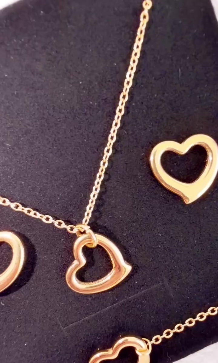 Jedes Stück wurde mit Liebe zum Detail gefertigt und trägt das zeitlose Symbol des Herzens. Die offenen Herz-Designs strahlen eine moderne Leichtigkeit aus, während die goldene Fassung für luxuriösen Glanz sorgt. Ob als Geschenk für einen besonderen Menschen oder als Liebeserklärung an dich selbst – das Amore Set berührt Herzen.