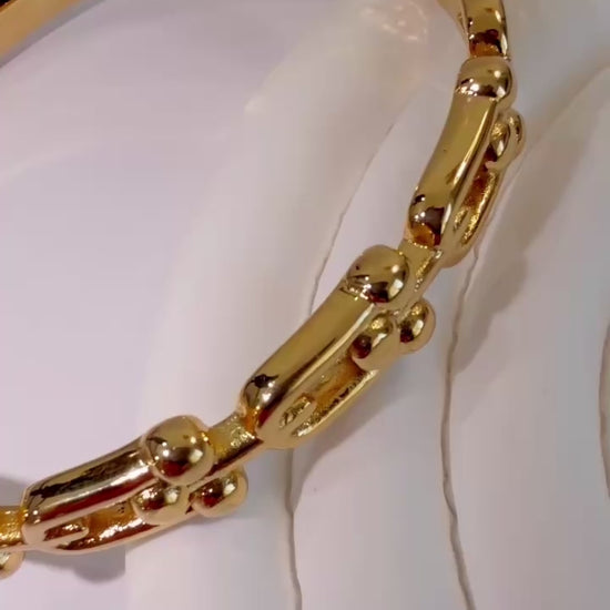 Entdecke unseren trendigen Chain Armreif mit elegantem Kettenglied-Design in Gold. Ein Statement-Piece, das deinem Look eine moderne und urbane Note verleiht.