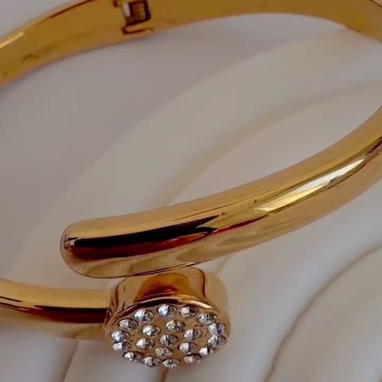 Entdecke unseren minimalistischen Circle Armreif mit funkelndem Kristall-Kreis in Gold. Ein zeitloses Design, das Eleganz und Schlichtheit perfekt vereint.