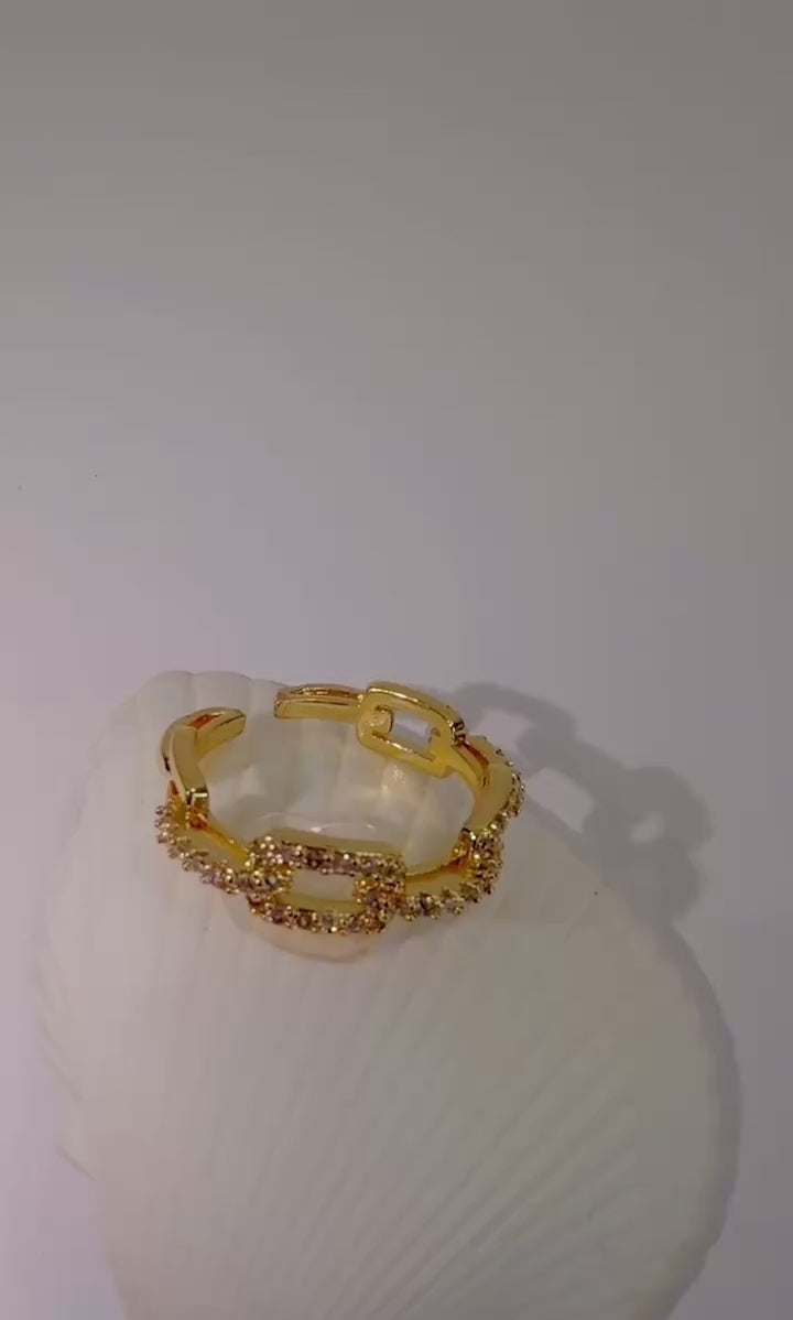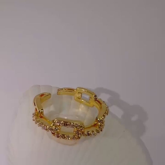 Premium-Qualität trifft Alltagstauglichkeit: Wasserbeständig und rostfrei begleitet dich dieser Ring durch jeden Moment deines Tages. Die zarten Kettenglieder, besetzt mit schimmernden Steinen, verleihen dem Ring eine luxuriöse Anmutung.