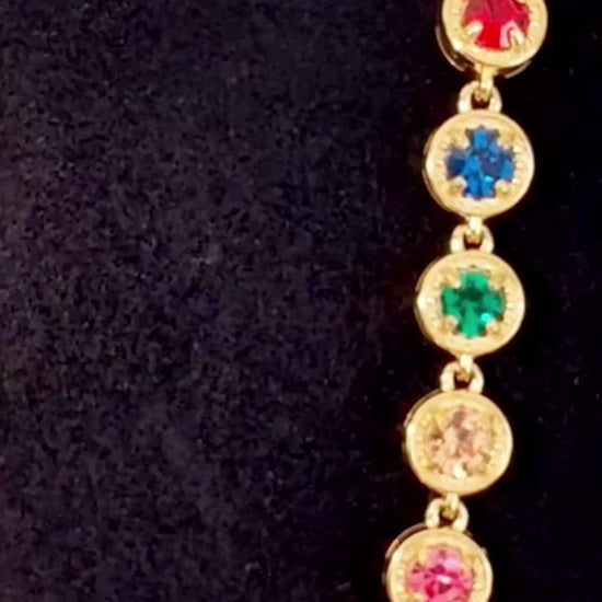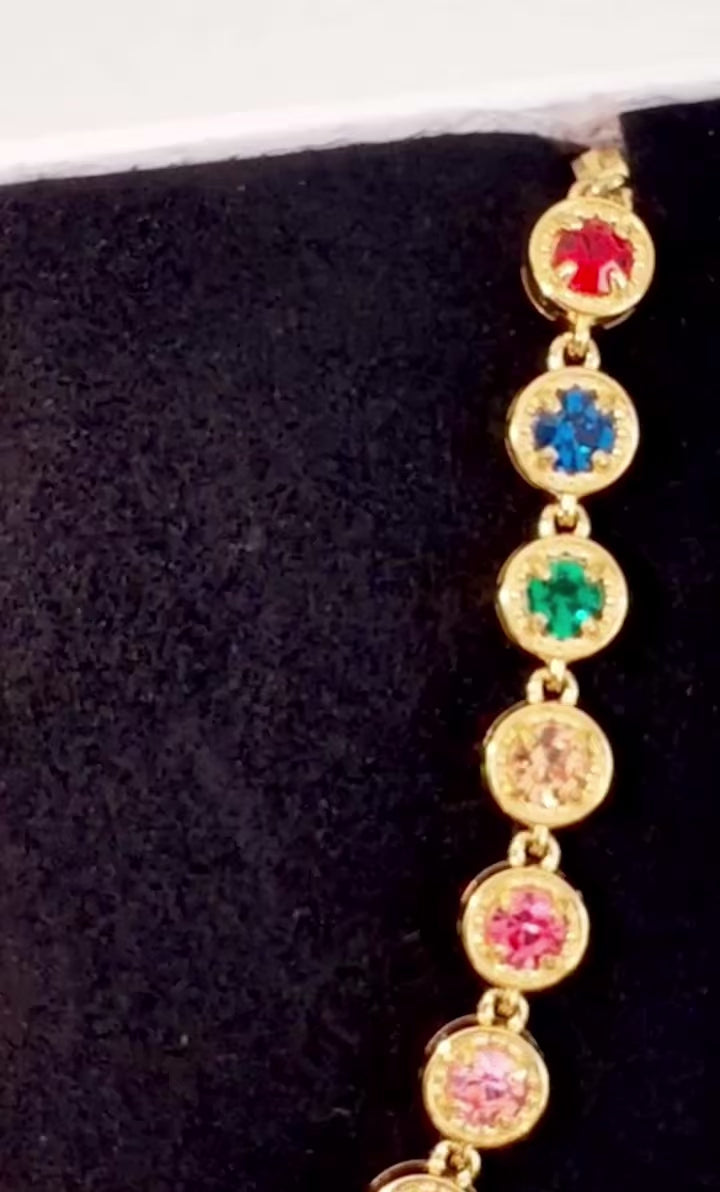 Entdecke unser bezauberndes Rainbow Set mit bunten zirkon Kristallsteinen in Gold-Fassung. Das Set besteht aus einer eleganten Halskette und einem passenden Armband, beide mit farbenfrohen Steinen in Blau, Rosa, Gelb und Grün.